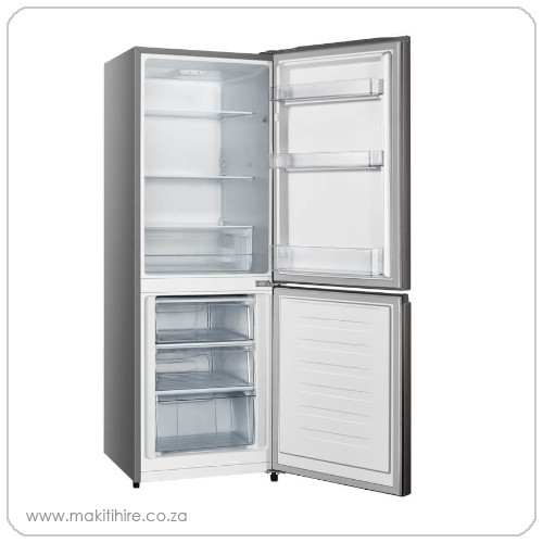 Refrigerator with fridge compartment at the top and freezer compartment at the bottom.