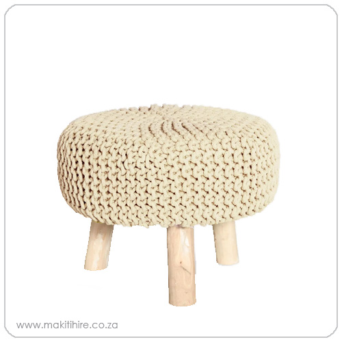 Round Woven Stool with wooden legs – Oatmeal colour
